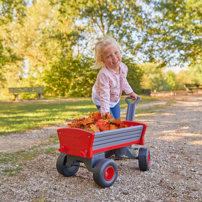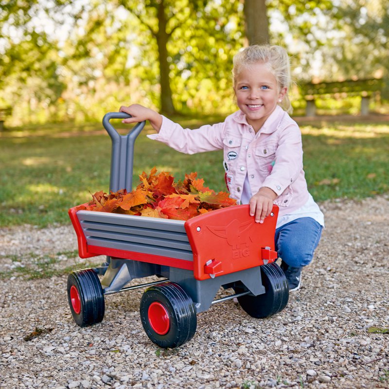 Wózek z rączką od firmy BIG świetnie sprawdzi się podczas zabaw w ogrodzie.