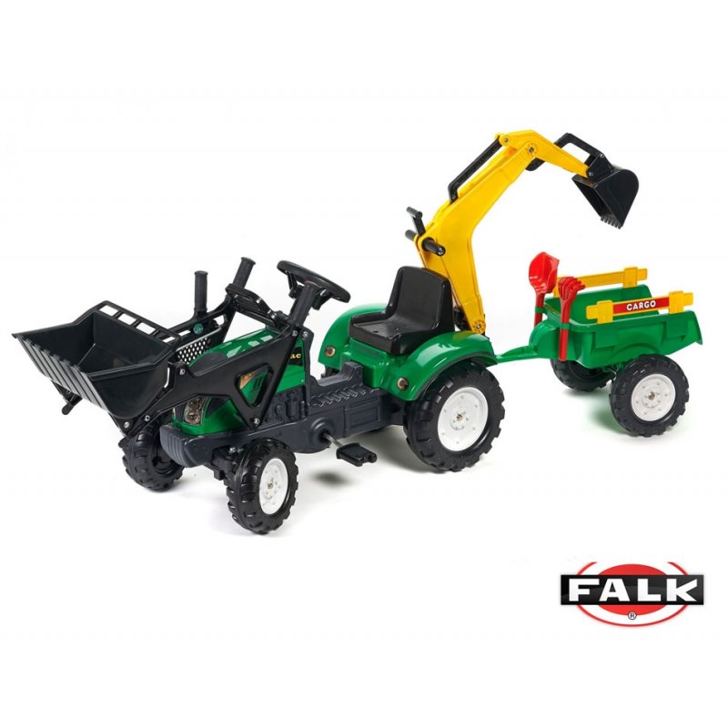 FALK Traktor RANCH zielony z łyżką, ładowarką i przyczepą do piasku