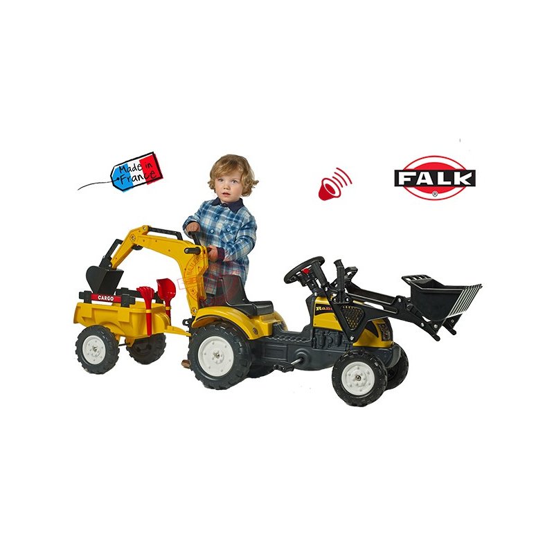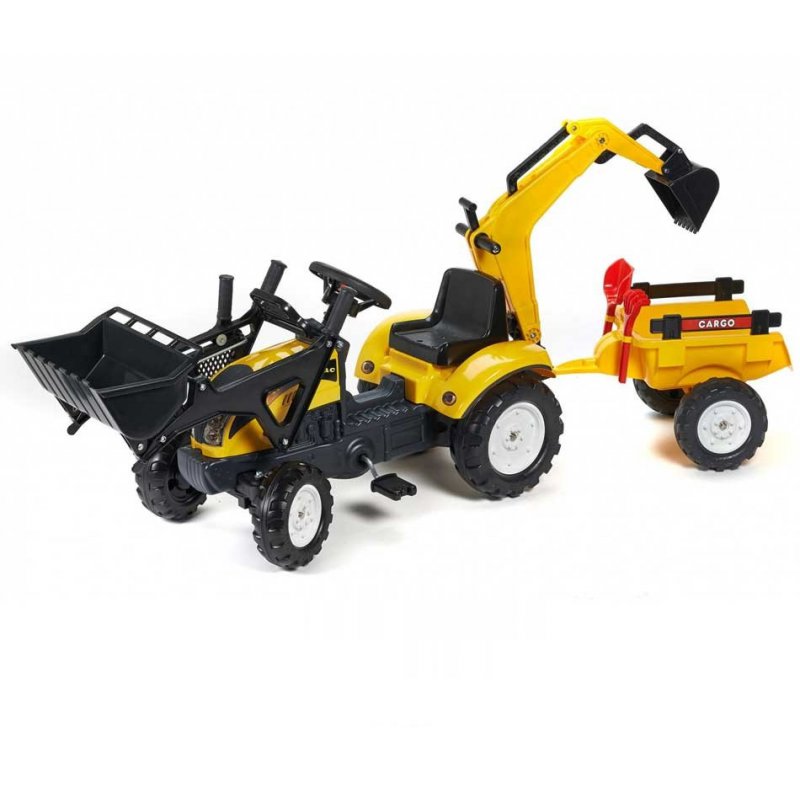 FALK Traktor na Pedały 2 łyżki Ciągnik Koparka Przyczepa + Akcesoria