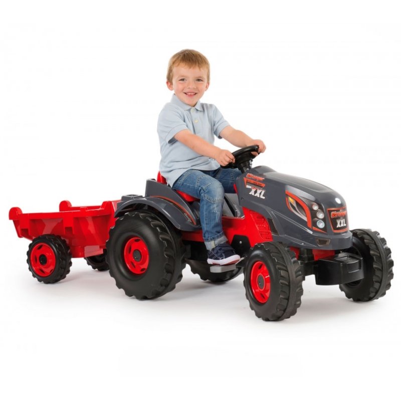 Traktor zabawka XXL z przyczepą na pedały został stworzony przez powszechnie znaną i cenioną za wysoką jakość produktów firmę Smoby. Traktor ten to pojazd głównie skierowany do chłopców w wieku 3-6 lat.
