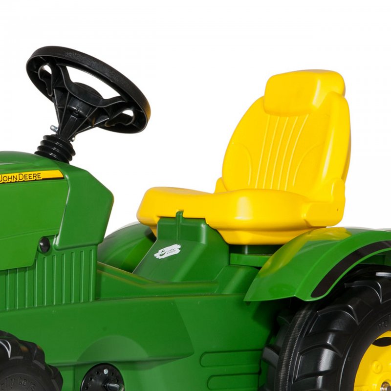 Traktorek na pedały John Deere z cichymi kołami to pojazd idealny dla dzieci w wieku od 3 do 8 lat. Traktor został wyposażony w regulowany fotel, przedni i tylny napęd, otwieraną maskę oraz w zintegrowany napęd łańcuchowy z regulacją napięcia łańcucha.