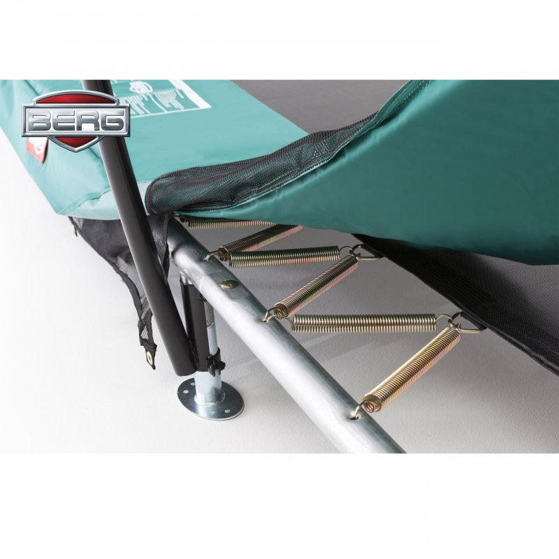 Co wyróżnia trampoliny Berg na tle innych producentów? Po pierwsze producent przeprowadza niezależne testy TUV, Intertek i AiB Vincotte oraz testuje odporność materiałów od warunków pogodowych. Trampoliny są wyposażone w ekstremalnie mocne maty do skakania, umocowane na solidnych sprężynach.