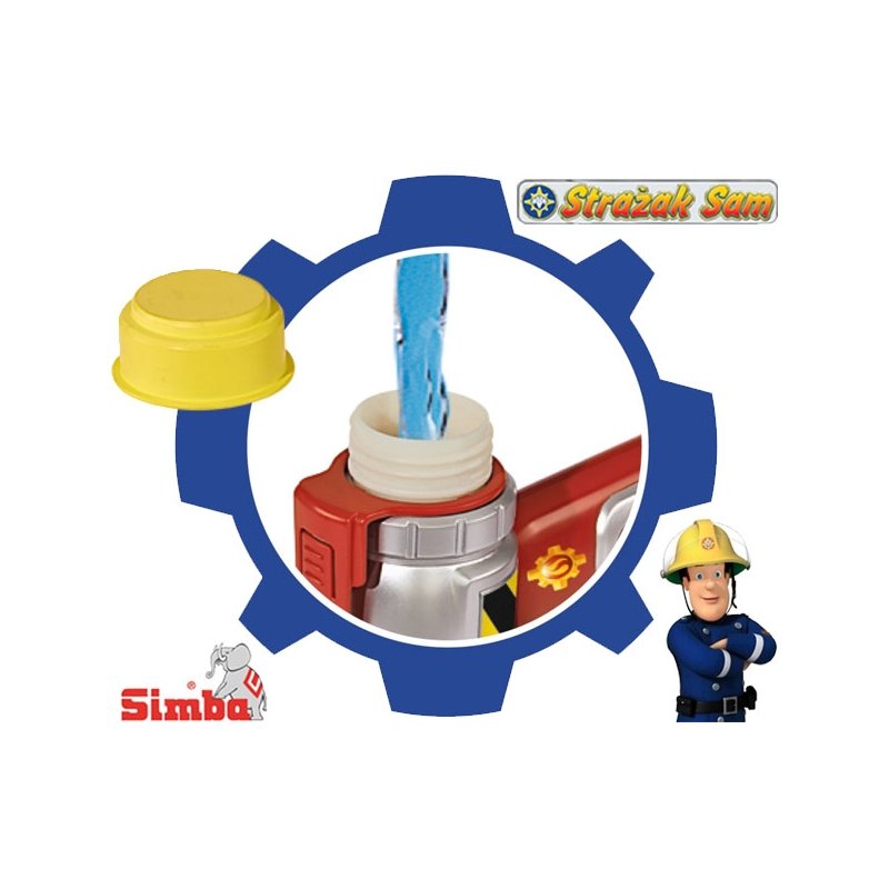 Tryskający wodą pistolet idealnie symuluje wąż strażacki do gaszenia pożarów. Wygodny w obsłudze - uchwyt oraz rękojeść z przyciskiem do wypuszczania strumienia wody. Psikawka posiada zaczep, dzięki czemu można ją przyczepić do paska. Teraz chłopcy będą mogli wcielić się w rolę dzielnego strażaka Sama.