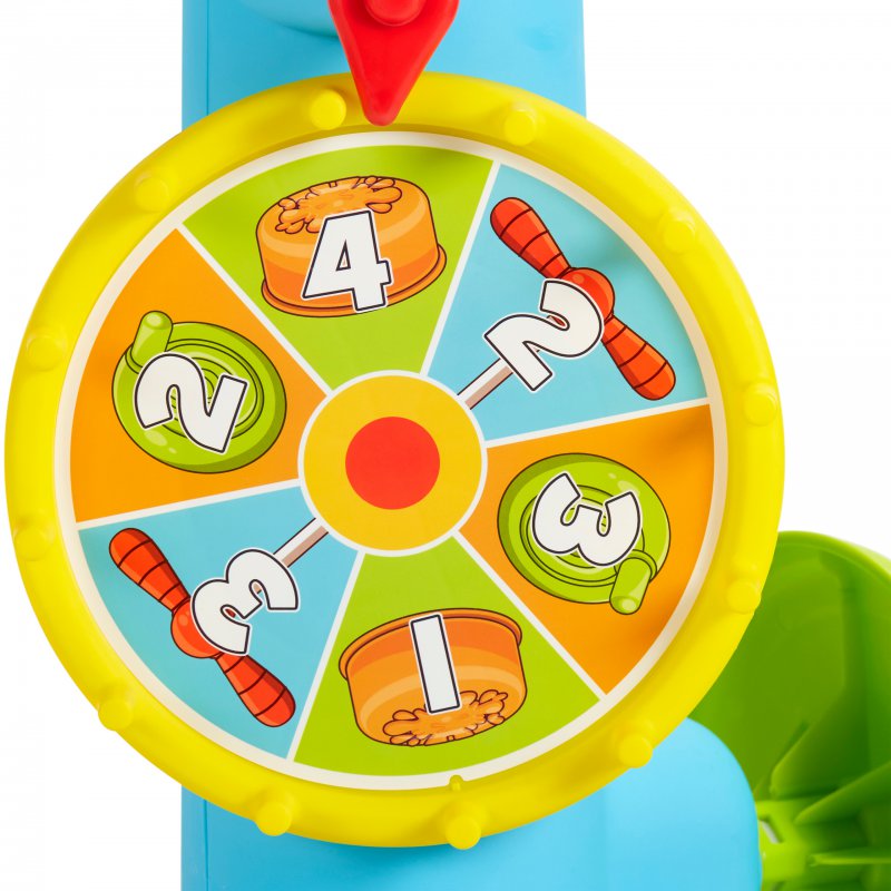 Zakręć kołem fortuny, które wskaże co musisz zrobić: nacisnąć na podkładkę, użyć ręcznej pompki lub obracać korbą. Wykonanie każdej z tych czynności powoduje uruchomienie Pop'n Splash - wystrzelenie piłeczek, lub wodnej fontanny w powietrze! Pociągnięcie w dół czerwonych uchwytów resetuje grę.