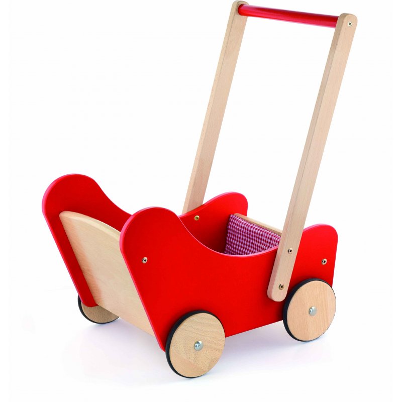 Klasyczny drewniany wózeczek dla lalek, starannie wykonany – z dbałością o każdy element. Wykonany z najwyższej jakości drewna bukowego, jest bardzo stabilny i idealnie sprawdzi się jako chodzik pchacz dla rocznej dziewczynki.