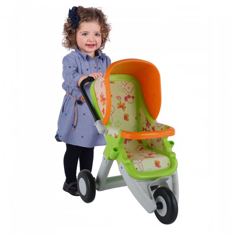 Wózek spacerówka z regulowanym siedziskiem przeznaczony dla lalki do 42 cm zaprojektowany przez cenioną francuska firmę Smoby. Przeznaczony do zabawy dla dzieci od lat 3