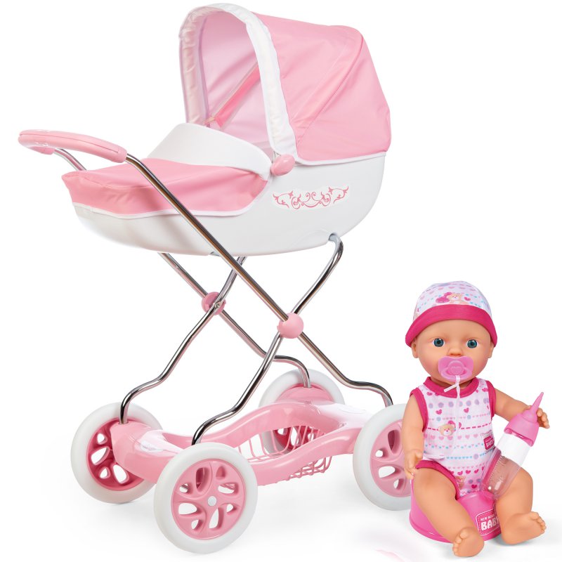 Wózek to jedno z najpopularniejszych i najbardziej pożądanych akcesoriów do zabawy z ukochaną lalką. Zestaw na pewno zachwyci każdą dziewczynkę. Utrzymany w modnych i lubianych odcieniach kolorystycznych, przykuwa uwagę i zachwyca subtelnością wzorów.