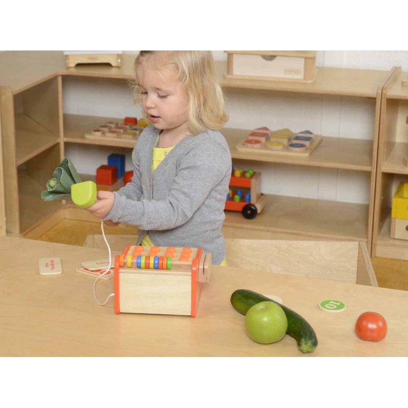 Dziecko może wrzucać niezbędne produkty spożywcze do wózka - jak na prawdziwych zakupach. Następnie uda się do kasy, gdzie użyje zabawkowych pieniędzy do zapłaty. Dzięki tej zabawce, dziecko nauczy się robić samodzielnie zakupy. Z pomocą rodzica maluch dowie się jak rozpoznać świeże owoce i warzywa, oraz jak liczyć pieniądze i płacić w sklepie.