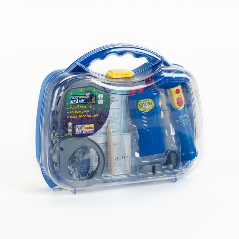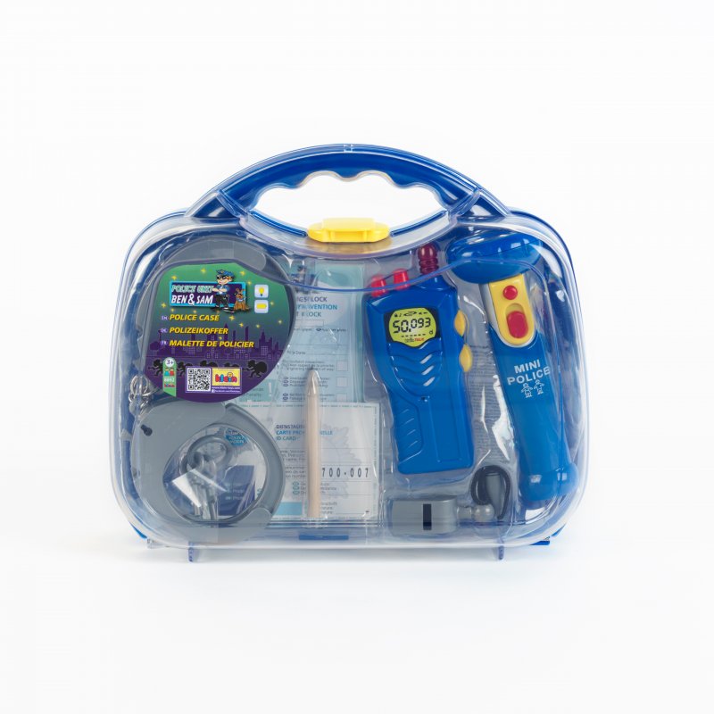Duży zestaw policyjny w walizce Ben i Sam, od firmy Klein, cenionego producenta zabawek dla dzieci, z pewnością będzie stanowił idealne uzupełnienie stroju każdego policjanta.