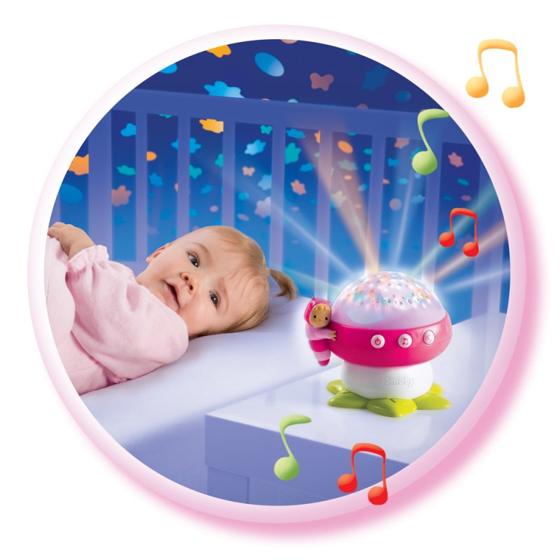Lampka nocna grzybek z projektorem i pozytywką Smoby Cotoons kolor różowy
