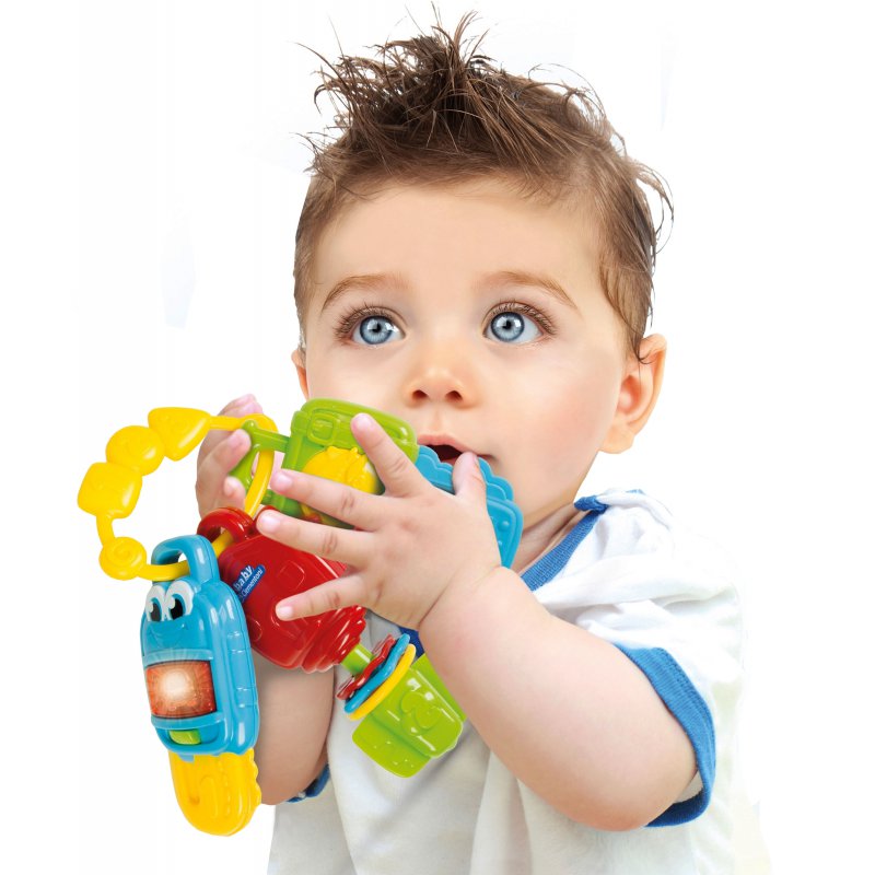 Elektroniczne kluczyki, to interaktywna zabawka dla najmłodszych. Zabawka posiada efekty świetlne i dźwiękowe, pełni funkcję gryzaka i grzechotki, pozwala dziecku stymulować percepcję słuchową, dotykową, rozwija także zdolności manualne.