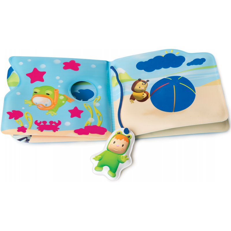Zabawę w kąpieli z pewnością uatrakcyjnią obrazki, które pod wpływem ciepłej wody zmieniają kolory. Po naciśnięciu piłeczki, która znajduje się na jednym z obrazków, książeczka wydaje dźwięki. Dodatkowo odnajdziemy tutaj przekładkę do książki w postaci breloczka z uroczą żabką.