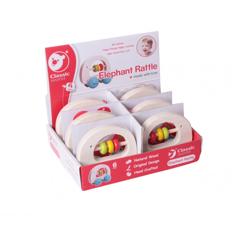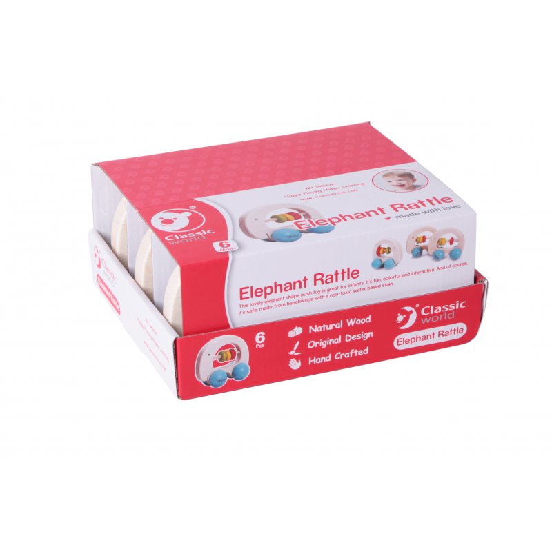Pchanka Grzechotka Drewniany Słonik Pchacz Na Kółkach Classic World