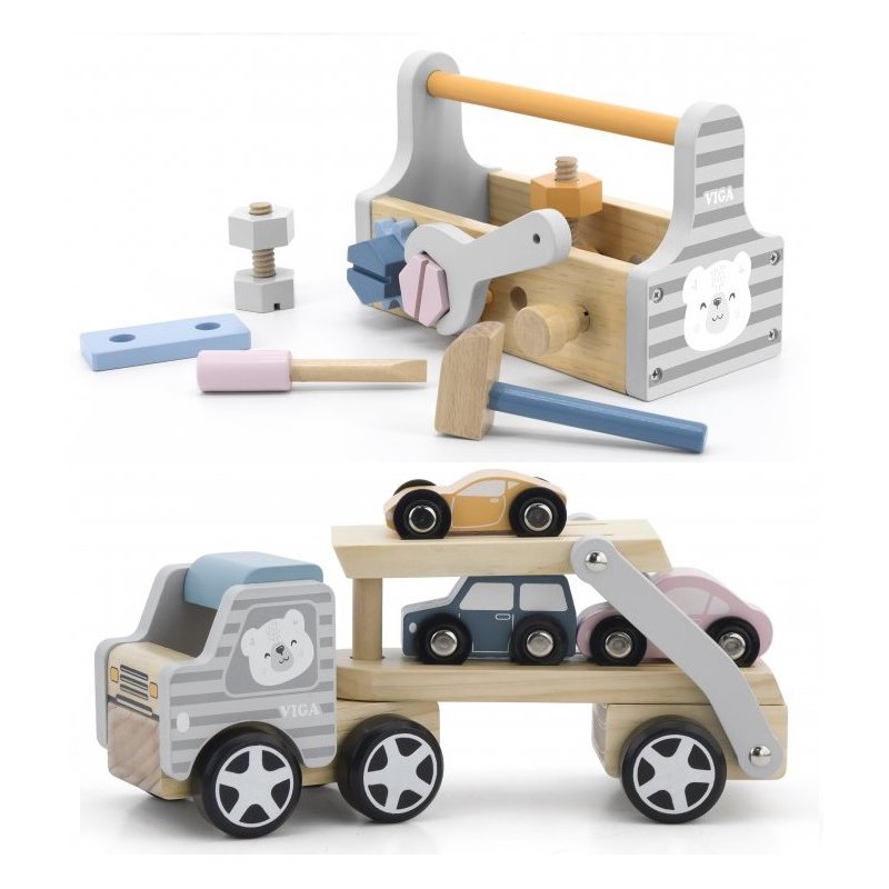 Twoje dziecko jest fanem motoryzacji? Nowa propozycja renomowanej marki Viga - Laweta Z Samochodami wprowadzi zabawę dziecka na nowy poziom. Piękne, pastelowe kolory oraz gwarancja uśmiechu. Dodatkowo mamy drewniany Zestaw Narzędzi który jest stworzony właśnie dla twojego dziecka. Twoja pociecha może rozwinąć zdolność majsterkowania.