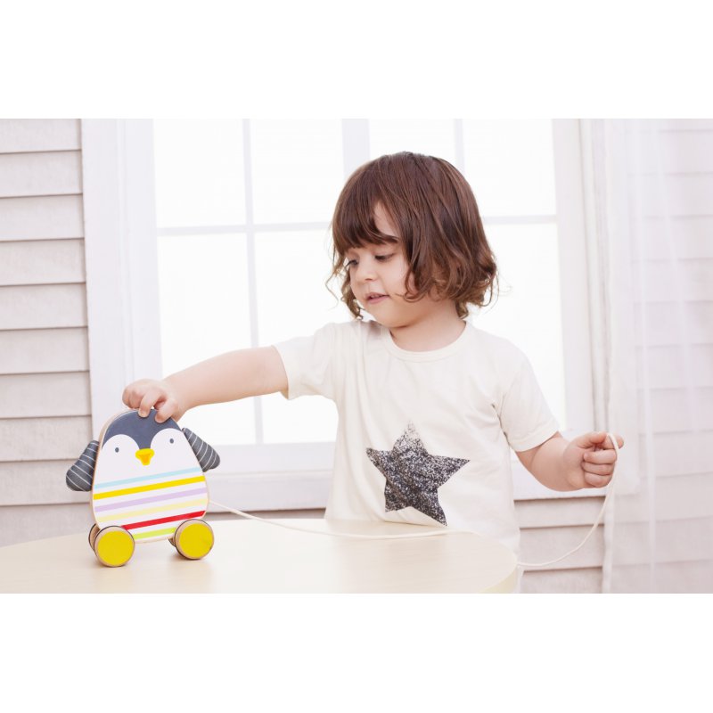 Zabawka Penguin Pull jest idealna dla nowych spacerowiczów, którzy ciągną ją obok siebie, gdy zaczynają chodzić. Dzięki unikalnemu efektowi kołysania w ruchu ten pingwin zdecydowanie różni się od innych zabawek do ciągnięcia, jakie widzieliście wcześniej!