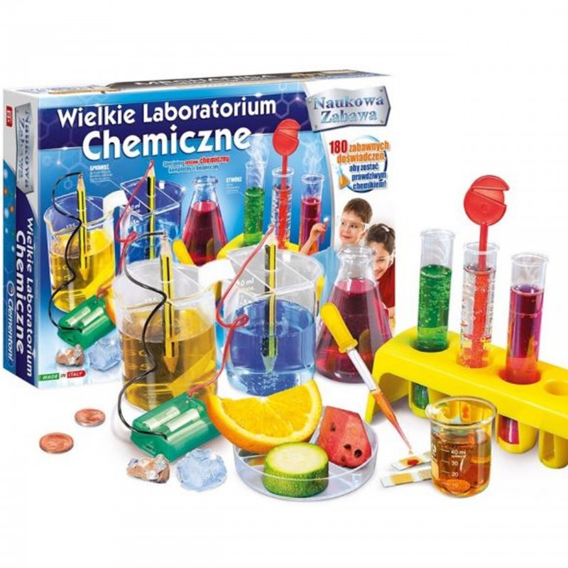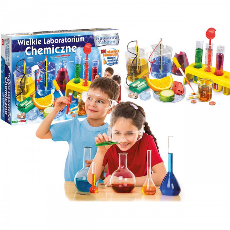 Zestaw naukowy zaprojektowany przez renomowanego producenta zabawek, włoską firmę Clementoni. Zestaw zawiera wszystkie przyrządy, które pozwolą stworzyć własne laboratorium badawcze i odkryć tajniki chemii. Ponad 180 możliwości ciekawych doświadczeń i ćwiczeń, które zaszczepią w dziecku pasję do chemii i nauki.