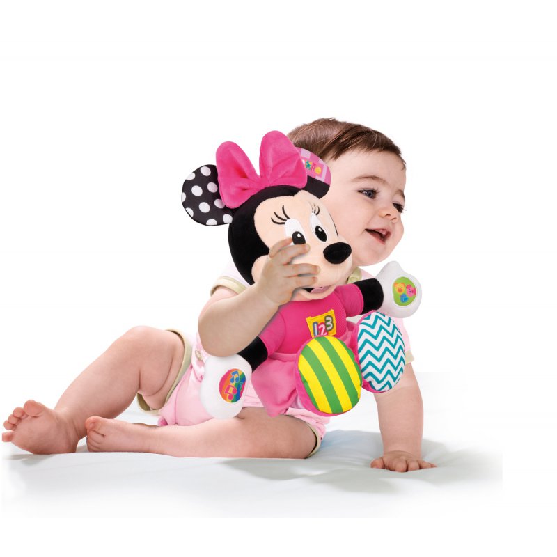 Dzięki 3 przyciskom na dłoniach i brzuchu Baby Minnie będzie śpiewać śmieszne rymowanki - oryginalnym głosem Minnie.