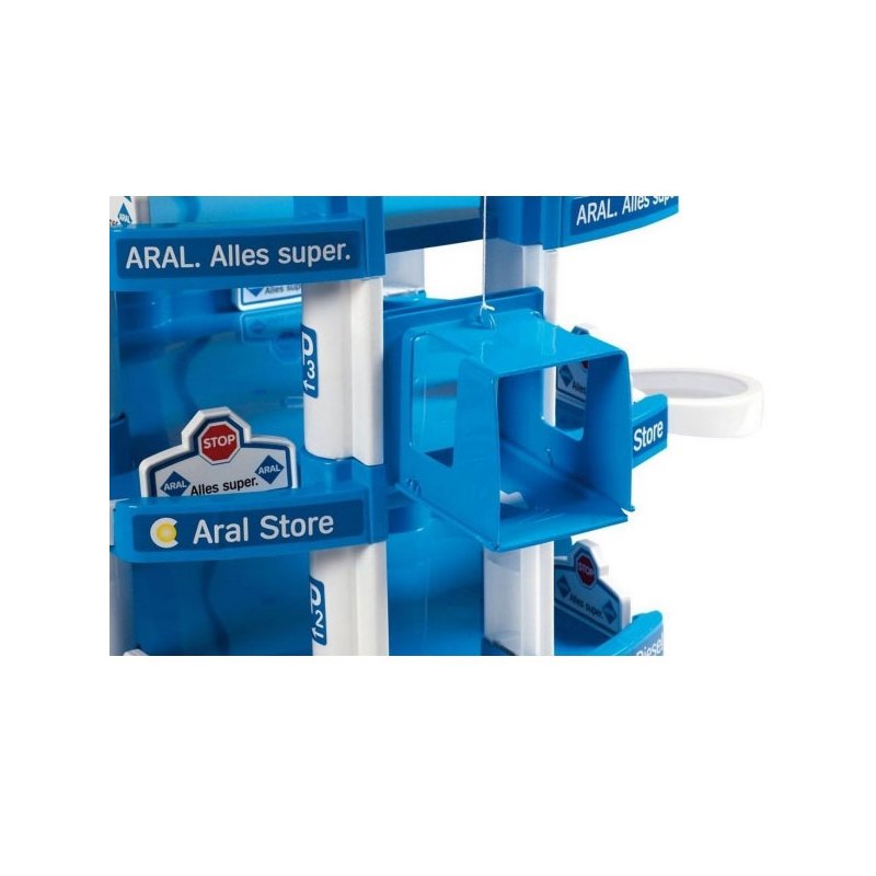 W zestawie 3 autka. Zjazd dookoła garażu, który na pewno uczyni zabawę znacznie ciekawszą. Pozwala on opuścić piętrowy parking. Stacja benzynowa z dwoma dystrybutorami pozwoli na zatankowanie dowolnie wybranego paliwa. Warsztat zawiera unoszone podnośniki, które umożliwią dziecku przeprowadzanie przeglądów i napraw. Kierowca może również odwiedzić myjnię, w której samochód zostanie umyty, nawoskowany i posprzątany. Dodatkowo garaż jest wyposażony w windę, dzięki której można łatwo przetransportować samochód pomiędzy poziomami.