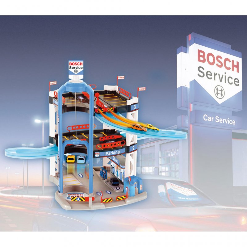 Trzy poziomowy parking na licencji Bosch Service, od firmy Klein, cenionego producenta zabawek dla dzieci, to idealny pomysł na prezent.