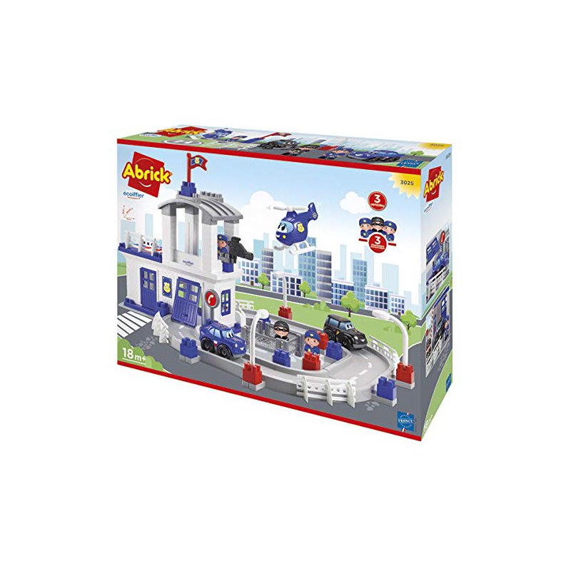 Duży zestaw Ecoiffier Abrick Posterunek Policji z 2 pojazdami i helikopterem został wyposażony we wszystkie elementy potrzebne do przeprowadzenia akcji ratunkowej. Posterunek posiada tor jazdy, lądowisko dla helikoptera, a nawet wieżę z monitoringiem.