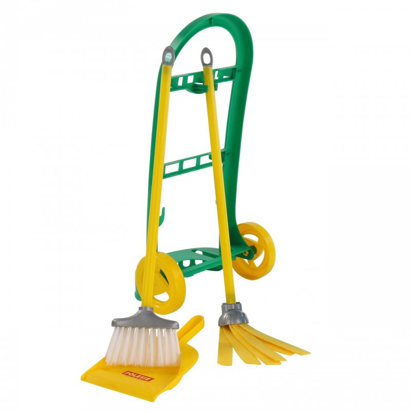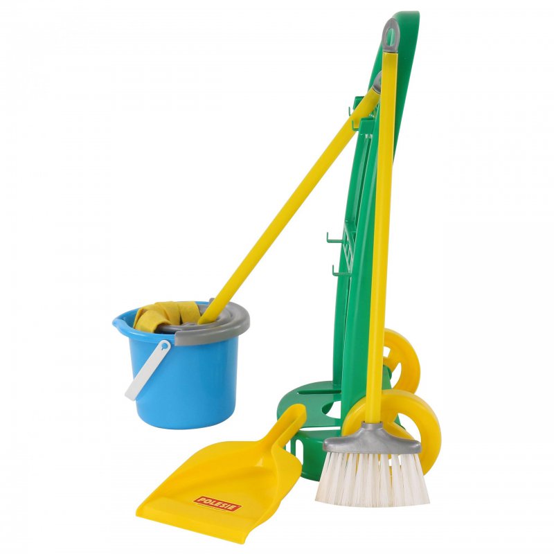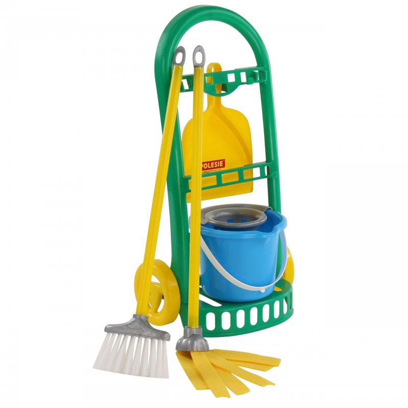 Na wyposażeniu tego rewelacyjnego zestawu znajdują się: wózek na kółkach, wiaderko z mopem, szczotka, szufelka.