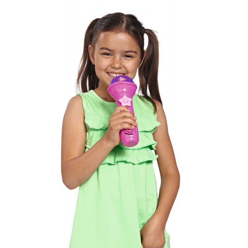 Łatwa w obsłudze zabawka, została wyposażone dodatkowo w 2 przyciski uruchamiające 4 piosenki demonstracyjne, 3 podkłady z rytmem. W trakcie zabawy mikrofon świeci mieniącymi się światełkami, wypuszczając barwną poświatę przez ażurową górną część urządzenia, tworząc klubowy nastrój.