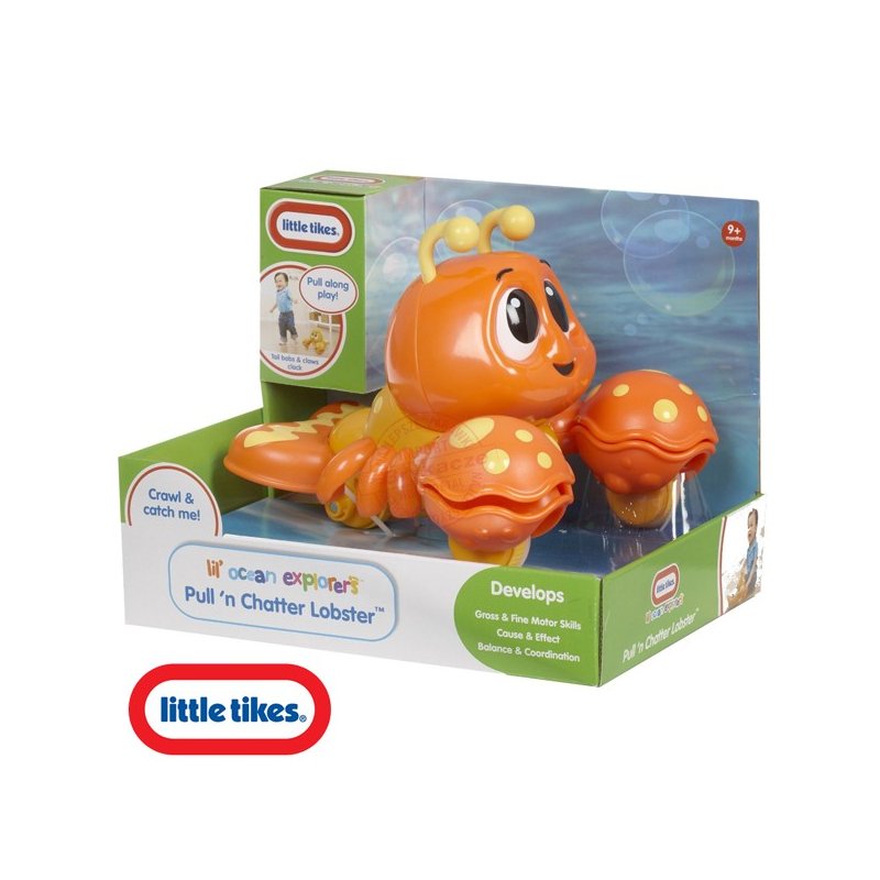 Znakomita seria edukacyjna Ocean Explorers firmy Little Tikes. Składa się ona z kilku zabawek uczących i jednocześnie bawiących. Urocza foczka wydaje dźwięki w zamian za celne rzuty. Mały żółwik uczy dopasowania kształtów, a pięknie kolorowe kraby poruszają się po całym pokoju. Uzupełnieniem serii edukacyjnej są zabawki wodne; pływające rybki i wirujące ośmiornice jak również wodna koszykówka. Wspaniały pierwszy towarzysz spacerów maluszka. Gdy dziecko ciągnie homara za sznureczek, ten wesoło klekocze szczypcami i podnosi ogonek.