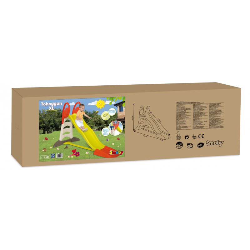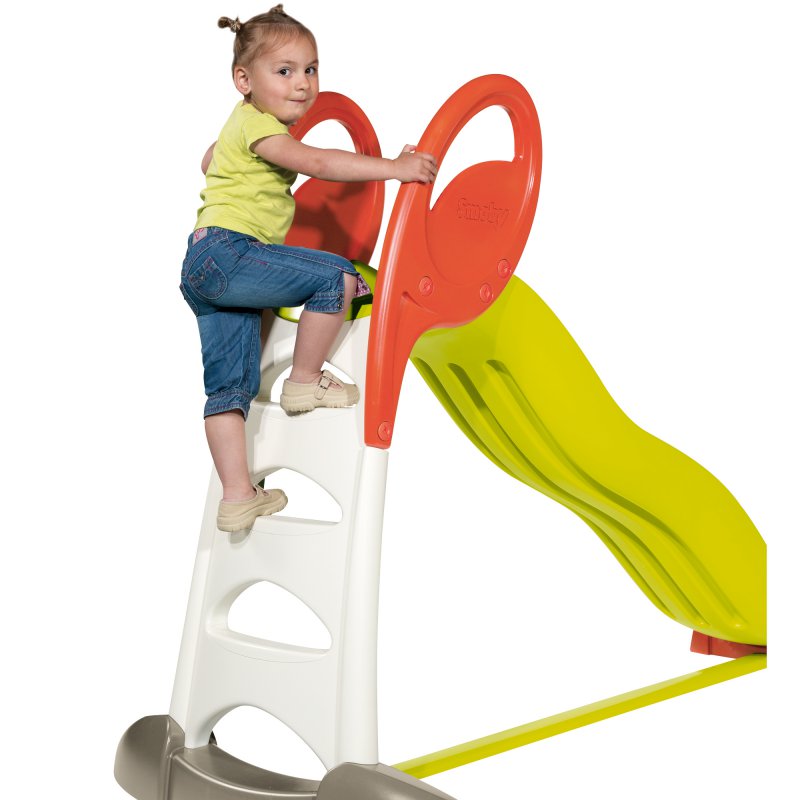 Zjeżdżalnia na ogrodowy plac zabaw. Wspaniała stabilna plastikowa, kolorowa zjeżdżalnia ogrodowa XL dla dzieci z łagodnym zjazdem, wyprodukowana przez renomowaną francuską firmę Smoby. Długość ślizgu 230cm! Bezpieczna dla dziecka dzięki szerokiej podstawie i szerokim poręczom. Ta zjeżdżalnia z plastiku na plac zabaw to bardzo wysoka jakość wykonania! Ten sprzęt ogrodowy jest odporny na warunki atmosferyczne i promienie UV. Rewelacja na plac zabaw w upalne dni!