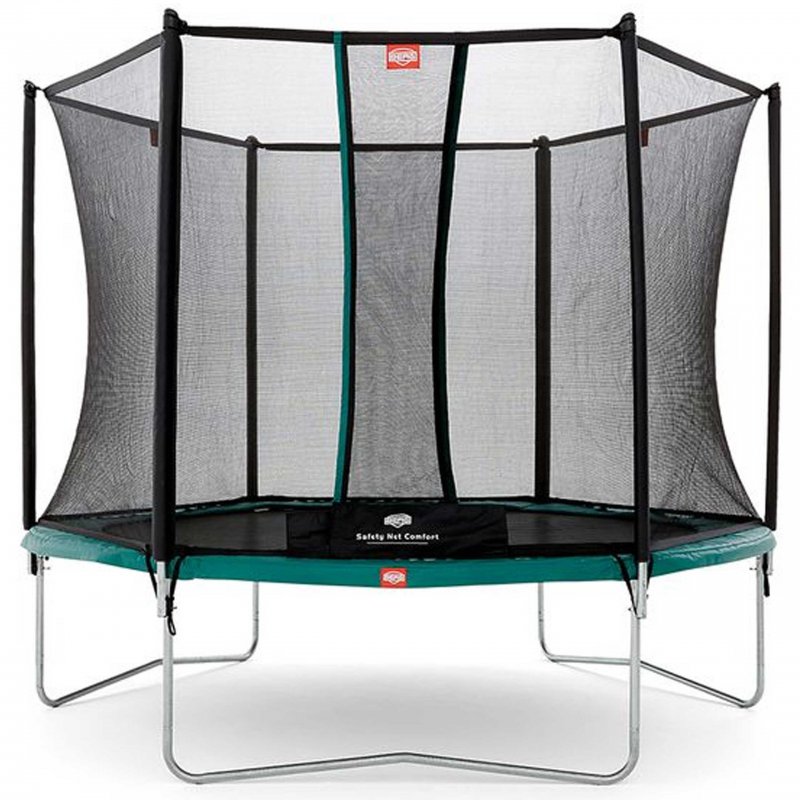 Po pierwsze producent przeprowadza niezależne testy TUV, Intertek i AiB Vincotte oraz testuje odporność materiałów od warunków pogodowych. Trampoliny są wyposażone w ekstremalnie mocne maty do skakania, umocowane na solidnych sprężynach, a w modelach Champion i Elite+ zastosowano innowacyjne rozwiązanie podwójnych sprężyn TwinSpring Gold, które są dłuższe, mocniejsze, bardziej elastyczne i nie ulegają korozji. Krawędzie są idealnie dopasowane do maty, co zwiększa bezpieczeństwo i komfort skakania, a materiał z którego są wykonane jest odporny na promieniowanie UV i przemakanie. Konstrukcja jest jeszcze bardziej stabilna dzięki wzmocnieniu spawów ramy oraz zastosowaniu stalowych połączeń, które są zdecydowanie mocniejsze od plastikowych. Wszystkie stalowe elementy są odporne na korozję dzięki zewnętrznej i wewnętrznej powłoce z cynku. Do trampoliny jest dołączona samo zamykająca się siatka, która zabezpiecza przed wypadnięciem z obszaru skakania. Dodatkowo możemy dokupić drabinkę, która posiada kieszonkę na buty – bardzo praktyczne rozwiązanie. Całość jest bardzo łatwa w montażu.