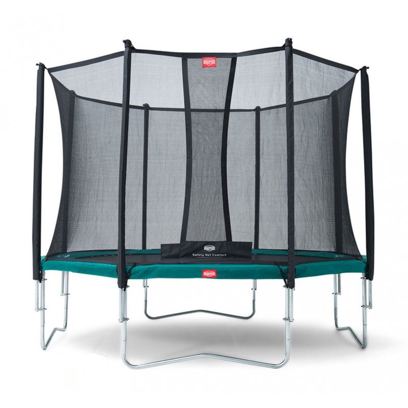 Po pierwsze producent przeprowadza niezależne testy TUV, Intertek i AiB Vincotte oraz testuje odporność materiałów od warunków pogodowych. Trampoliny są wyposażone w ekstremalnie mocne maty do skakania, umocowane na solidnych sprężynach, a w modelach Champion i Elite+ zastosowano innowacyjne rozwiązanie podwójnych sprężyn TwinSpring Gold, które są dłuższe, mocniejsze, bardziej elastyczne i nie ulegają korozji. Krawędzie są idealnie dopasowane do maty, co zwiększa bezpieczeństwo i komfort skakania, a materiał z którego są wykonane jest odporny na promieniowanie UV i przemakanie. Konstrukcja jest jeszcze bardziej stabilna dzięki wzmocnieniu spawów ramy oraz zastosowaniu stalowych połączeń, które są zdecydowanie mocniejsze od plastikowych. Wszystkie stalowe elementy są odporne na korozję dzięki zewnętrznej i wewnętrznej powłoce z cynku. Do trampoliny jest dołączona samo zamykająca się siatka, która zabezpiecza przed wypadnięciem z obszaru skakania. Dodatkowo możemy dokupić drabinkę, która posiada kieszonkę na buty – bardzo praktyczne rozwiązanie. Całość jest bardzo łatwa w montażu.