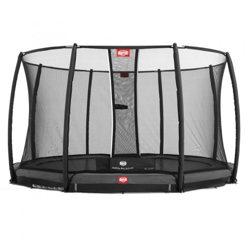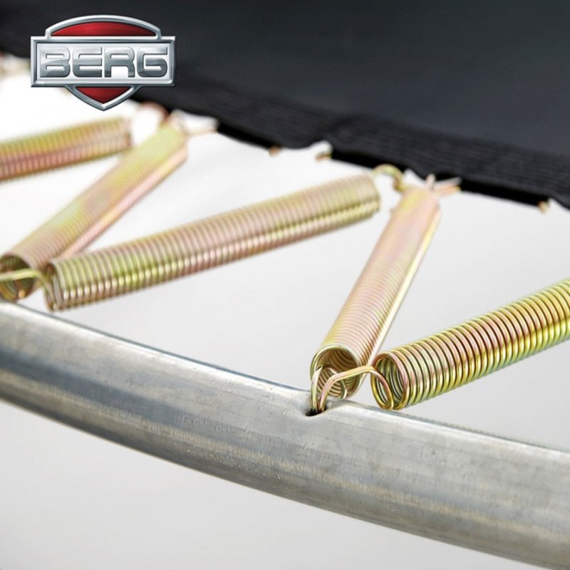 Trampolina z serii InGround z siatką Deluxe to sprzęt najwyższej jakości w przystępnej cenie. Co wyróżnia trampoliny Berg na tle innych producentów? Po pierwsze producent przeprowadza niezależne testy TUV, Intertek i AiB Vincotte oraz testuje odporność materiałów od warunków pogodowych. Krawędzie są idealnie dopasowane do maty, co zwiększa bezpieczeństwo i komfort skakania, a materiał z którego są wykonane jest odporny na promieniowanie UV i przemakanie. Konstrukcja jest jeszcze bardziej stabilna dzięki wzmocnieniu spawów ramy oraz zastosowaniu stalowych połączeń, które są zdecydowanie mocniejsze od plastikowych. Wszystkie stalowe elementy są odporne na korozję dzięki zewnętrznej i wewnętrznej powłoce z cynku. Do trampoliny jest dołączona samo zamykająca się siatka, która zabezpiecza przed wypadnięciem z obszaru skakania. Całość jest bardzo łatwa w montażu.
