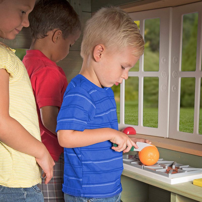 Niech twoje dziecko przeniesie się do eleganckich, wiktoriańskich czasów ze wszystkimi wygodami współczesności. Domek posiada duże okna, ławkę ogrodową w angielskim stylu, przestrzenne drzwi połówkowe oraz w pełni wyposażoną kuchnię. Całość zachowana w łagodnych, pastelowych barwach w klasycznym stylu. Do wyposażenia domku należą nowoczesne urządzenia oraz artykuły spożywcze, które można kroić.