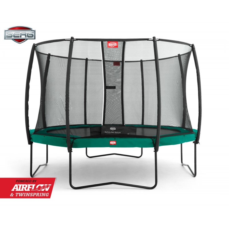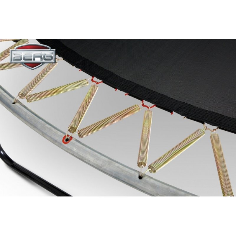 Po pierwsze producent przeprowadza niezależne testy TUV, Intertek i AiB Vincotte oraz testuje odporność materiałów od warunków pogodowych. Trampoliny są wyposażone w ekstremalnie mocne maty do skakania, umocowane na solidnych sprężynach, a w modelach Champion i Elite+ zastosowano innowacyjne rozwiązanie podwójnych sprężyn TwinSpring Gold, które są dłuższe, mocniejsze, bardziej elastyczne i nie ulegają korozji. Krawędzie są idealnie dopasowane do maty, co zwiększa bezpieczeństwo i komfort skakania, a materiał z którego są wykonane jest odporny na promieniowanie UV i przemakanie. Konstrukcja jest jeszcze bardziej stabilna dzięki wzmocnieniu spawów ramy oraz zastosowaniu stalowych połączeń, które są zdecydowanie mocniejsze od plastikowych. Wszystkie stalowe elementy są odporne na korozję dzięki zewnętrznej i wewnętrznej powłoce z cynku. Do trampoliny jest dołączona samo zamykająca się siatka, która zabezpiecza przed wypadnięciem z obszaru skakania. Dodatkowo możemy dokupić drabinkę, która posiada kieszonkę na buty – bardzo praktyczne rozwiązanie. Całość jest bardzo łatwa w montażu.