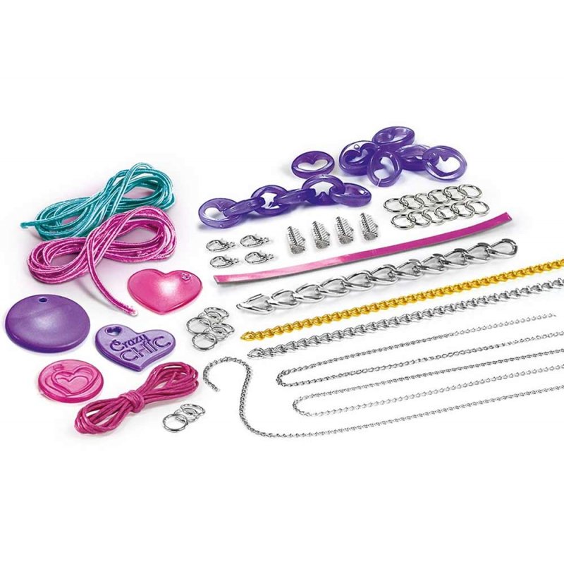 Biżuteria Rock Crazy Chic to zestaw stworzony przez cenionego producenta zabawek dla dzieci, włoską firmę Clementoni. Pozwala on tworzyć różnorodne modne bransoletki w rockowym stylu, aby iść z duchem mody! W zestawie znajdują się różne aluminiowe łańcuszki, plastikowe ogniwa do łączenia, kółeczka z metalicznym wykończeniem, opaska z ekoskóry, kolorowe rzemyki, metalowe zapięcia i końcówki, wisiorki z logo Crazy Chic oraz karty z ilustracjami.