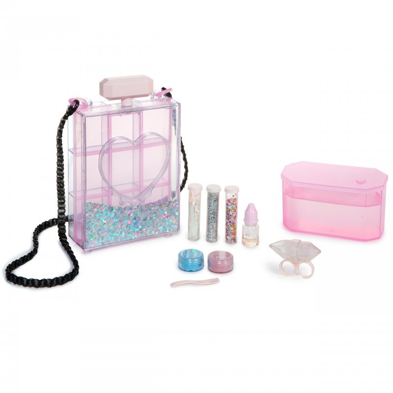 Glam Goo - Zestaw Slime Deluxe Pack z torebką. Zestaw do kreatywnej zabawy slime. W zestawie odnajdziesz wszystko, czego potrzebujesz, by stworzyć niebanalne ozdoby ze slime w roli głównej. Twoja absolutnie wyjątkowa torebka i biżuteria zachwyci wszystkie koleżanki, a dzięki różnorodnym dodatkom, możesz odświeżać jej wygląd, wymieniając zawartość transparentnych akcesoriów. Zestaw zawiera torebkę w stylu glamour i pierścień, któremu możesz nadawać dowolny kolor, wymieniając slime. Śliczne dodatki, takie jak błyskotki w różnych kształtach i barwach, czy puder koloryzujący - pomagają uzyskiwać różne wersje ozdobnego masy.