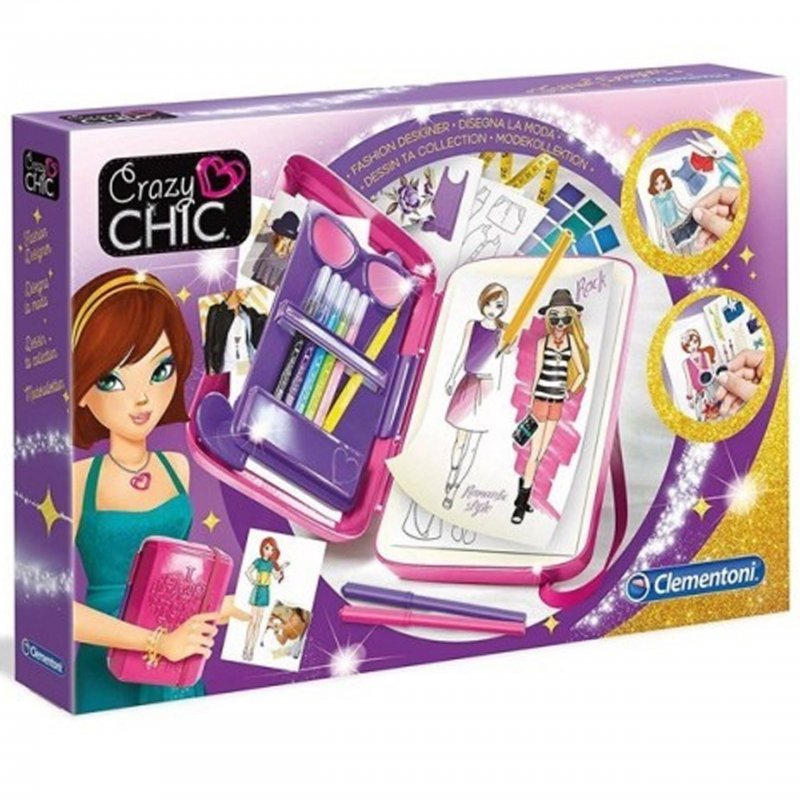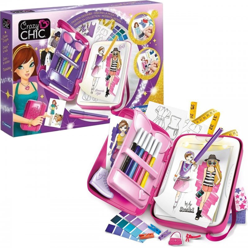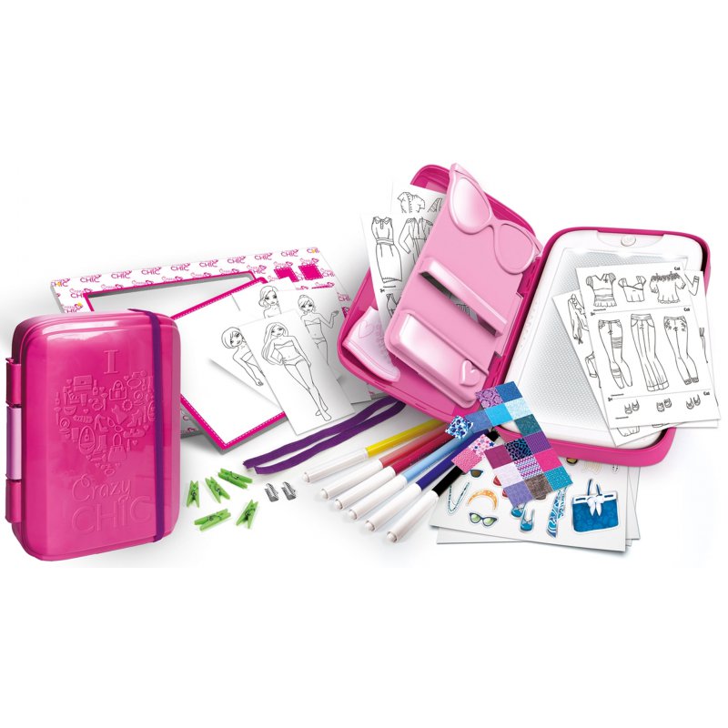 Studio Projektowy Crazy Chic, to zestaw stworzony przez cenionego producenta zabawek dla dzieci, włoską firmę Clementoni. Pozwala on tworzyć unikatowe, jedyne w swoim rodzaju projekty kreacji.Przezroczysta nakładka umożliwi kopiowanie obrazków.