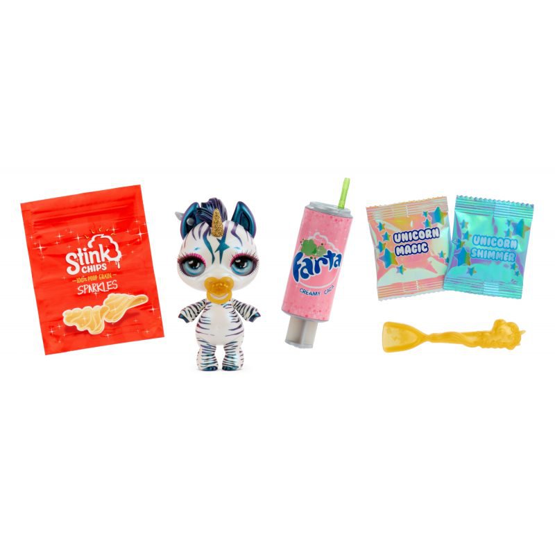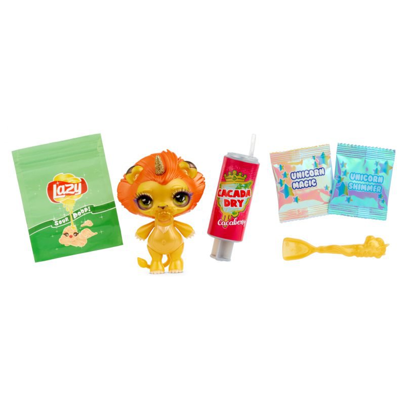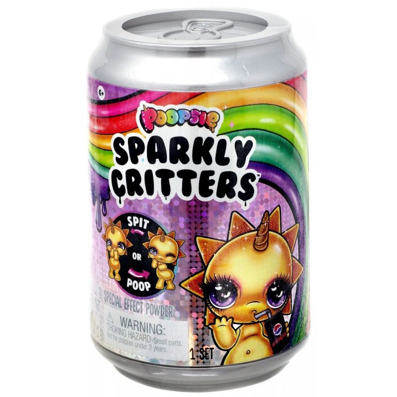 Sparkly Critters to nowa seria lśniących i bajkowych uroczych stworzonek, które zmiękczą serce każdej dziewczynki! W każdym plastikowym opakowaniu imitującym puszkę z napojem, skrywa się kilka fantastycznych niespodzianek do rozpakowania. Jedną z nich jest śliczny, baśniowy stworek - jednorożec, który posiada zabawne funkcje do odkrycia: robi slime'ową kupkę lub pluje glutkiem. W zestawie znajdują się także akcesoria do zrobienia glutka.