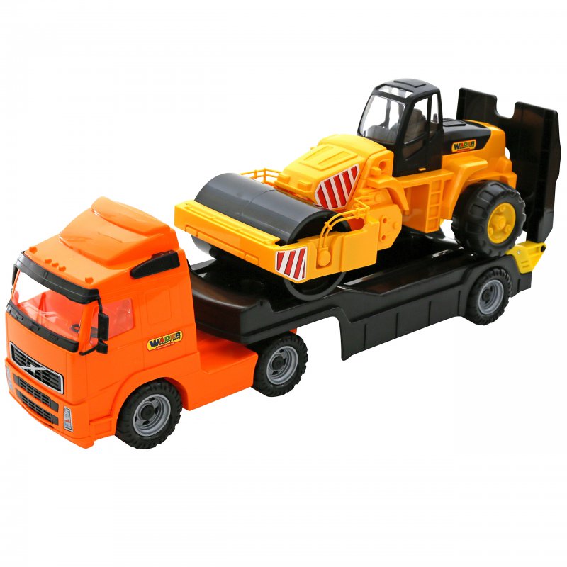 WADER Duża Ciężarówka z Przyczepą Laweta + Pojazd Walec Holownik