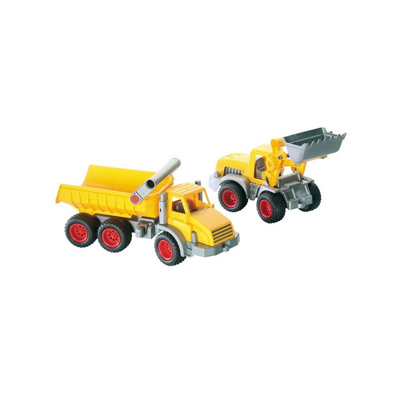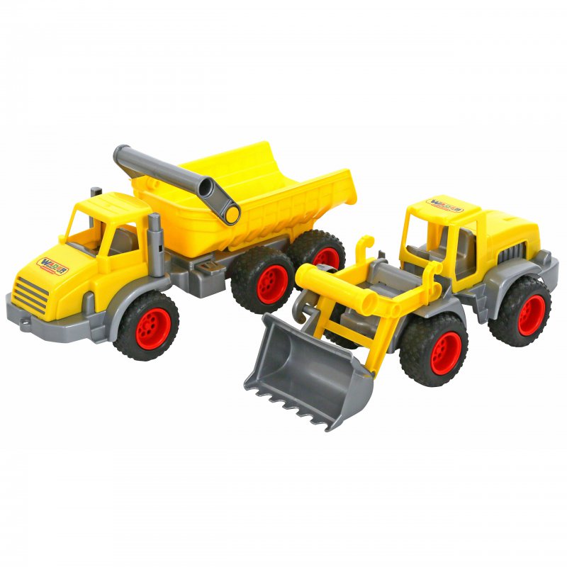 WADER Zestaw dwóch pojazdów; wywrotki i ładowarki, które idealnie nadadzą się do piaskownicy.