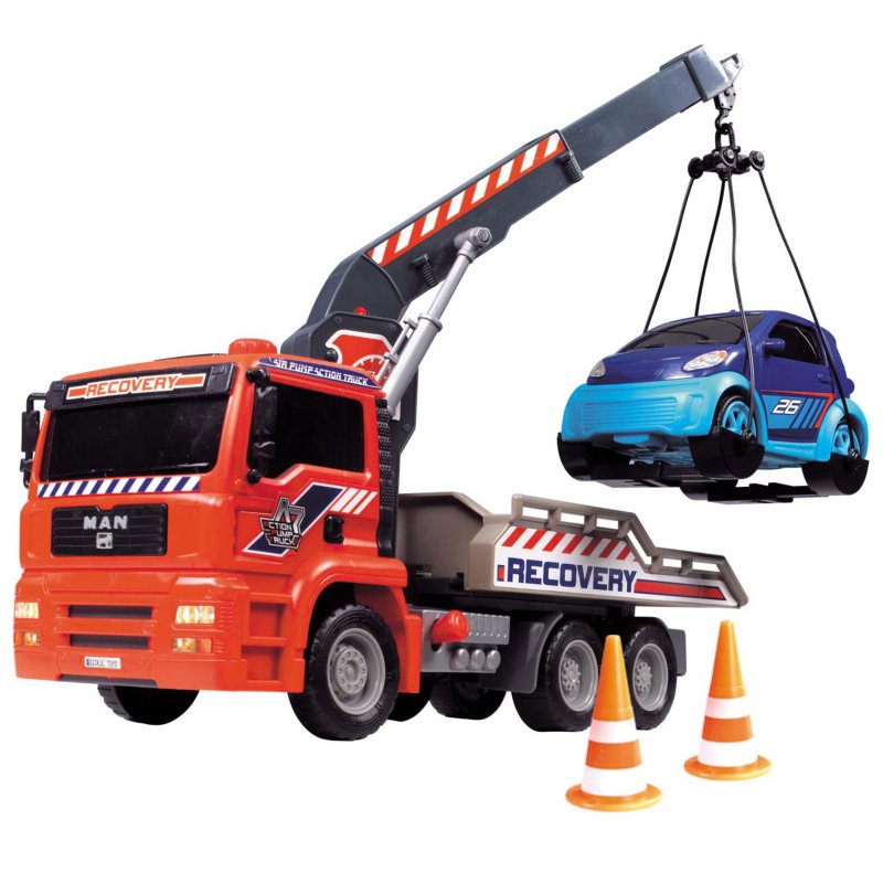 Zabawka posiada pompkę do podnoszenia i opuszczania pojazdów, która sprawi radość każdemu chłopcu, niezależnie do wieku! Pojazd ma 31 cm długości, dodatkowo do auta dołączono samochód, który należy dowieźć do warsztatu. Już teraz Twój maluch będzie holował pojazd dokładnie tak jak w rzeczywistości!