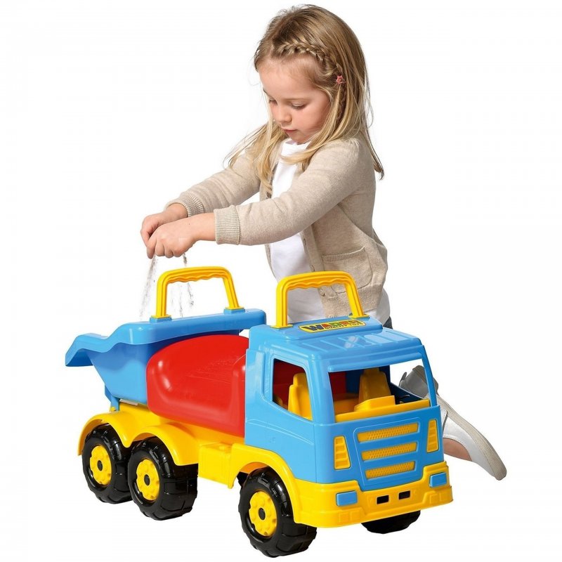 Ciężarówka z funkcją jeździka/pchacza od firmy Wader Quality Toys Polesie, renomowanego producenta zabawek dla dzieci, to idealny pomysł na prezent dla dzieci. Ogromna ciężarówka wywrotka do zabawy w piaskownicy, na plaży, a także w domu czy na podwórku. Wywrotka z ruchomą skrzynią ładunkową zapewni chłopcom dużą frajdę i wiele godzin fantastycznej zabawy. Podnoszenie skrzyni ładunkowej wykonywane jest mechanicznie.