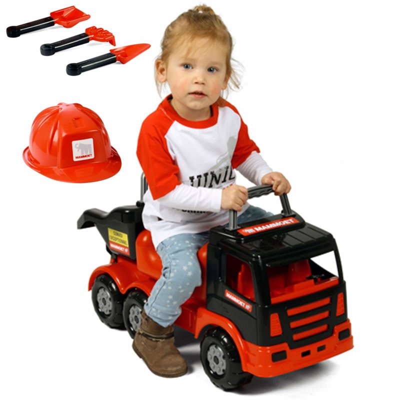 Wader QT Mammoet olbrzymia ciężarówka jeździk pchacz wywrotka o długości 69 cm w zestawie z łopatkami, grabkami oraz kaskiem jest idealna dla dzieci w wieku od 12 miesiąca życia...