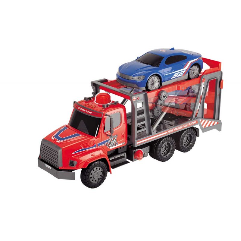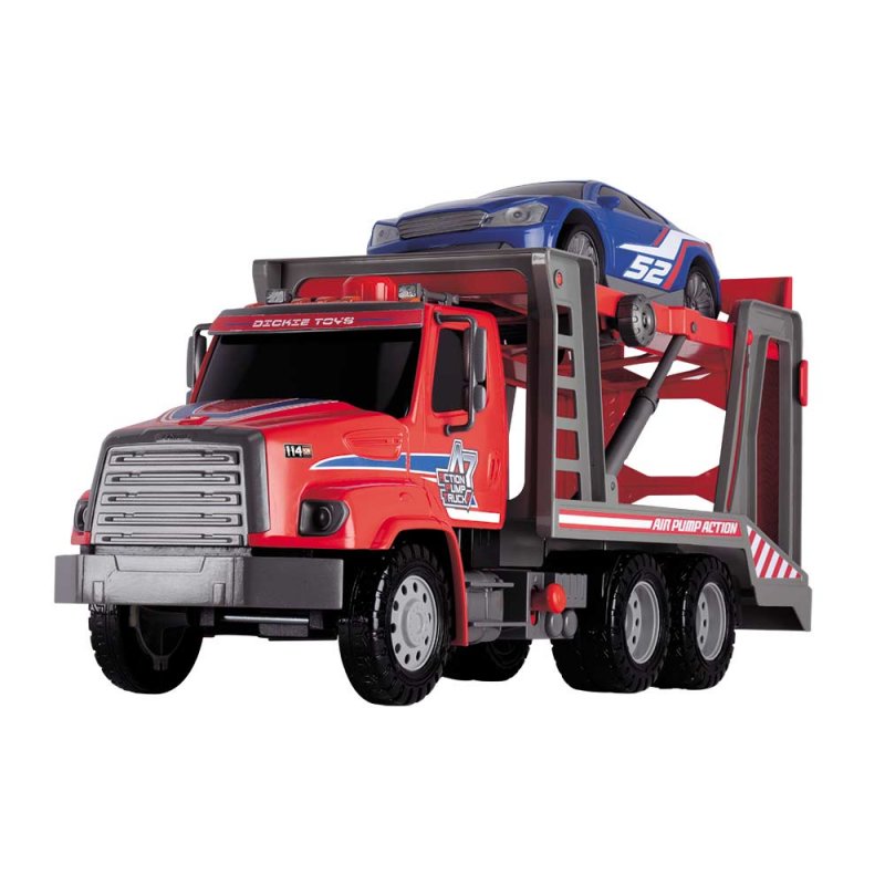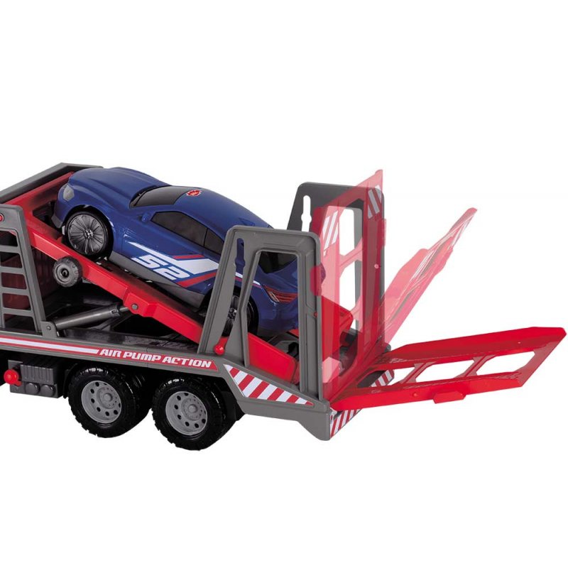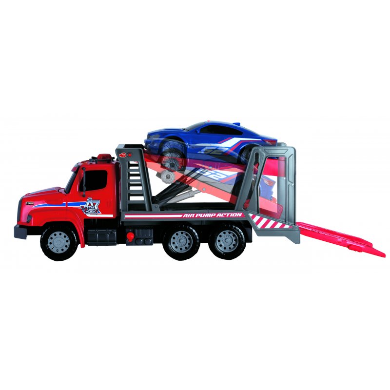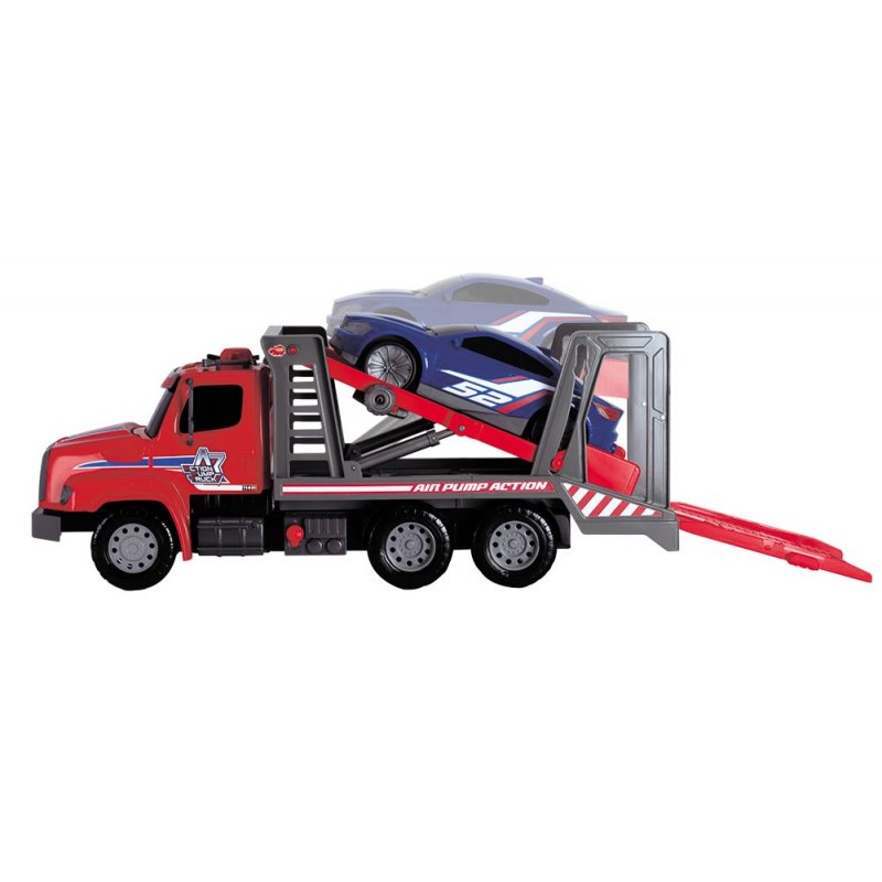 Samochód ciężarowy posiada pneumatyczny mechanizm "Air Pump" - wciśnij przycisk i zobacz jak podnośnik podnosi się i opada w zależności od Twoich potrzeb. Laweta posiada otwieraną tylną burtę, która tworzy platformę najazdową. Wspaniały pojazd który doskonale uzupełni kolekcję waszego dziecka.