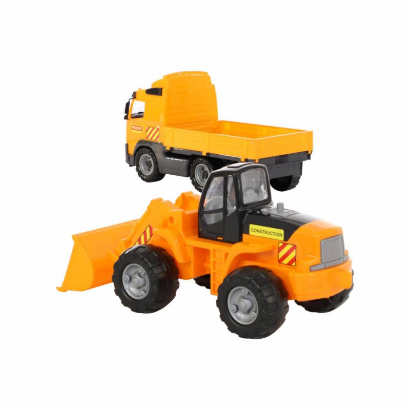 Wymiary ciężarówki: 45 х 19 х 25cm, wymiary koparki: 48,5 х 22 х 22,5 cm.