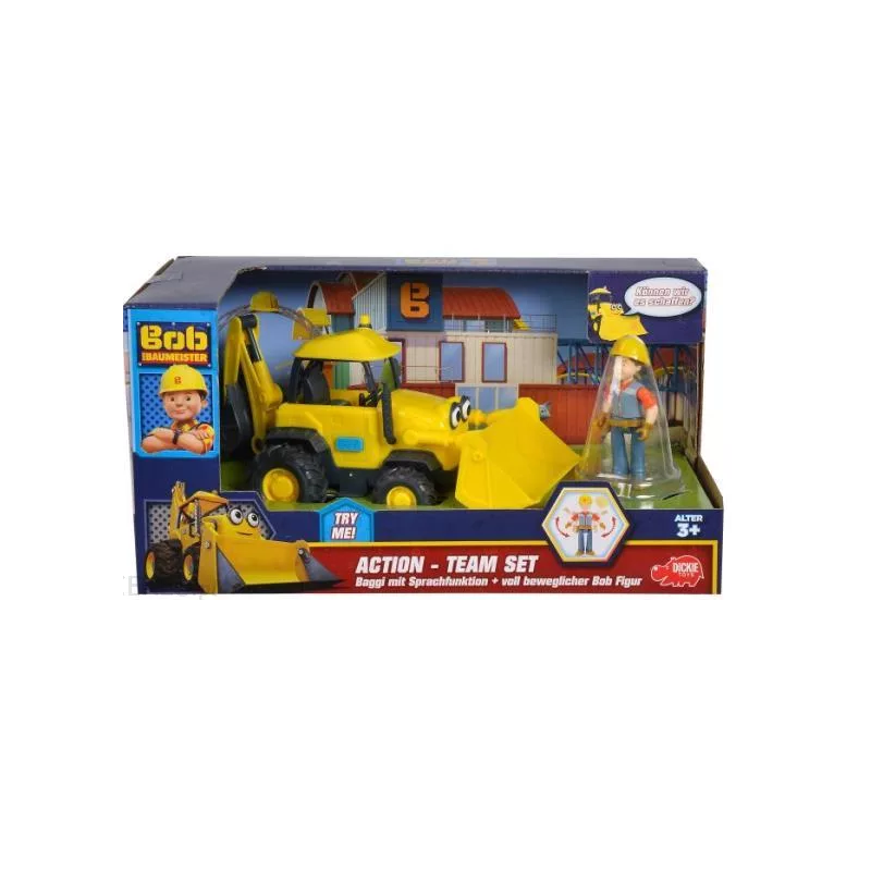 Koparka Scoop z dźwiękiem na licencji Bob Budowniczy w zestawie z figurką 7 cm zaprojektowany przez cenionego producenta zabawek niemiecką firmę Dickie