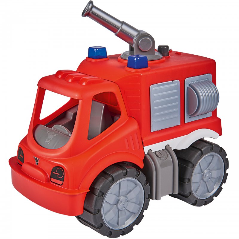BIG Straż Pożarna z serii Power Worker. Samochodzik wykonany tak, by zapewnić bezpieczeństwo maluchom, wyposażony z zaokrąglone krawędzie. Dodatkowo pojazd posiada działko wodne. Można go obracać w dowolnym kierunku i obsługiwać za pomocą dołączonego przycisku.