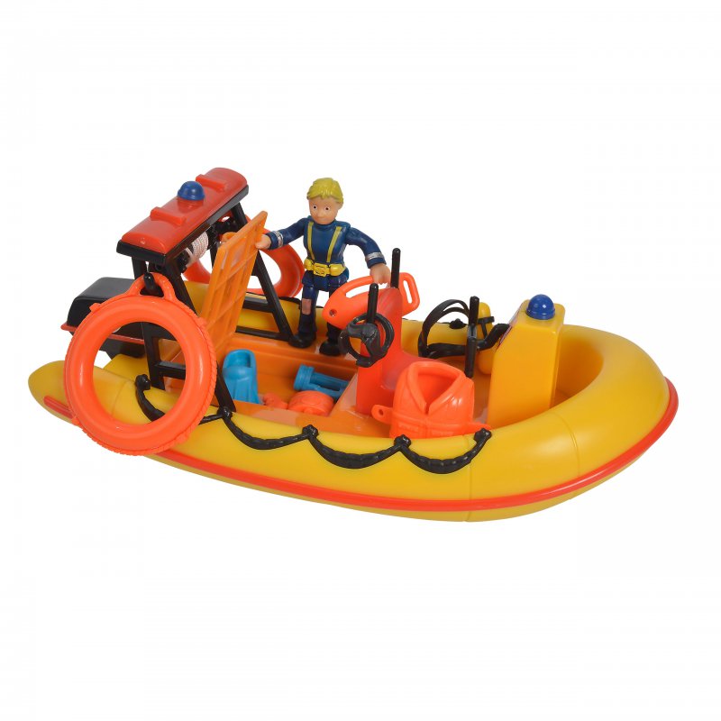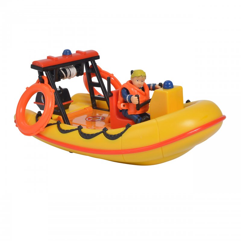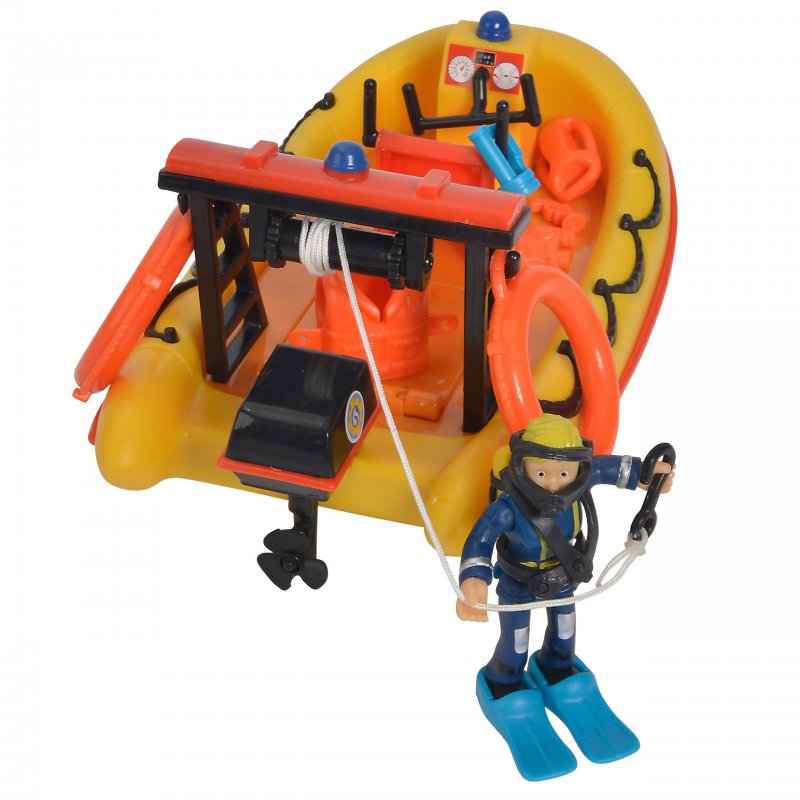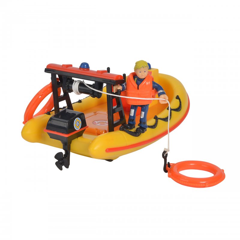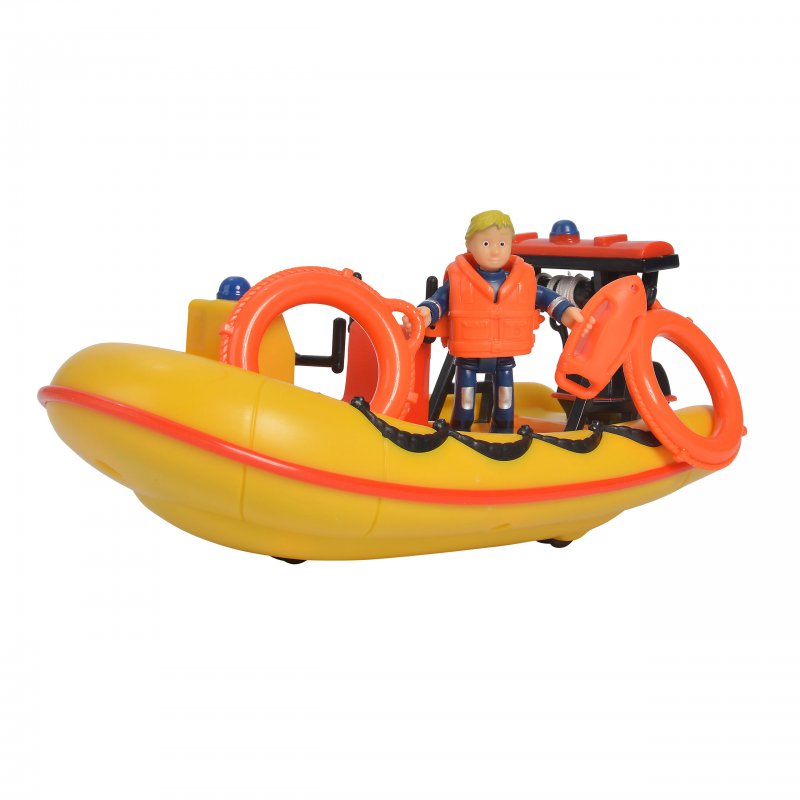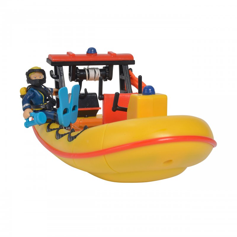 Łódź wyposażona w ruchomy ster,linę do której można przyczepić koło ratunkowe oraz skrytkę na akcesoria. Stanowi idealne uzupełnienie pozostałych pojazdów Strażaka Sama. W zestawie Figurka Penny z ruchomymi kończynami.