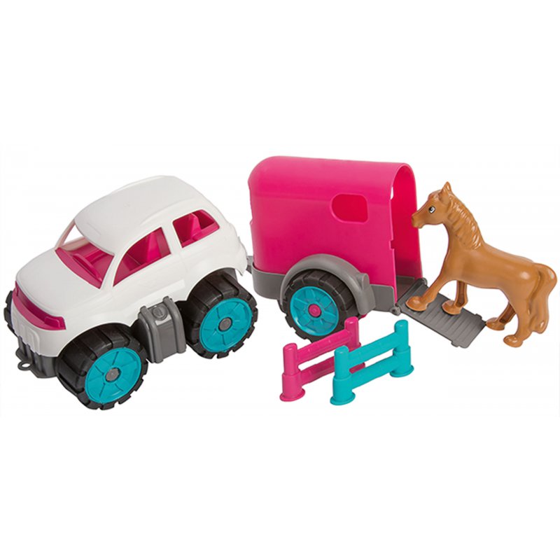 BIG Power Worker Mini to seria pojazdów dla maluchów o ergonomicznych kształtach fantastycznie sprawdzających się podczas zabawy. Ciężarówka ta należy do tej grupy produktów. Samochód z przyczepką Power Worker Mini przeznaczony jest zarówno do zabawy w domu jak i na zewnątrz. Nowa ciężarówka z przyczepą pozwoli na transportowanie konia, który znajduje się w zestawie. Dodatkowo do kompletu dołączone są dwa płotki - przeszkody, które sprawiają, że zabawa z konikiem jest jeszcze ciekawsza.