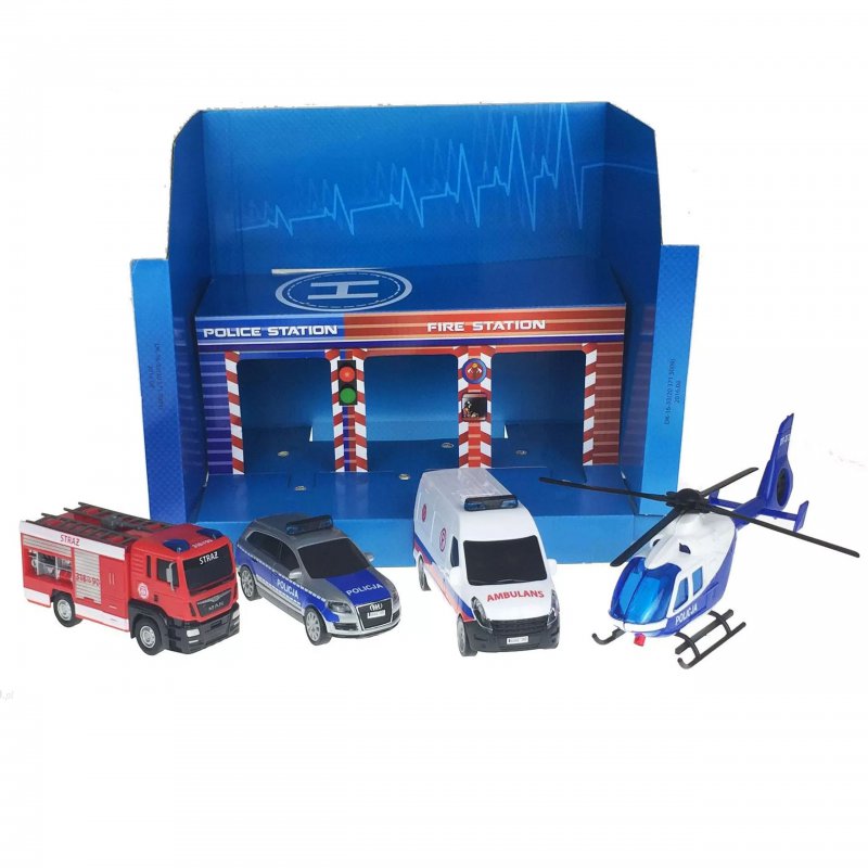 | Wymiary | Helikopter 23cm; Wóz Strażacki 15 cm; Radiowóz 15 cm; Karetka 15 cm |