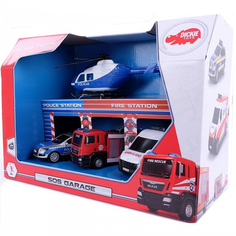Baza ratunkowa SOS Policja Straż Karetka 3 Pojazdy + Helikopter Dickie